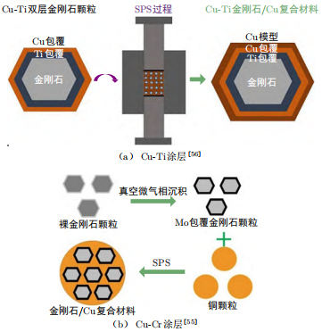 金刚石颗粒表面金属化:利用化学镀、真空微蒸发镀、盐浴镀及磁控溅射等工艺在金刚石表面镀覆金属层的方式降低表面张力促进润湿。